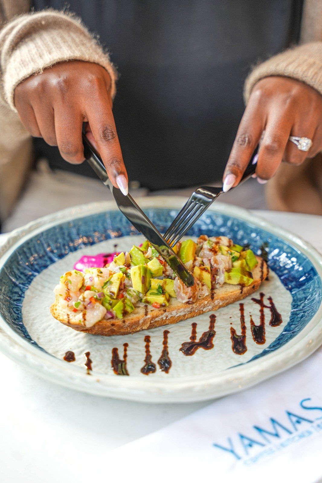 The restaurant boasts a warm, inviting atmosphere that captures the essence of "Philoxenia"—the Greek spirit of hospitality. Whether you’re enjoying a casual coffee and pastry in the morning or a lively dinner with signature cocktails and Greek wine in the evening, Yamas offers a relaxed yet sophisticated backdrop.