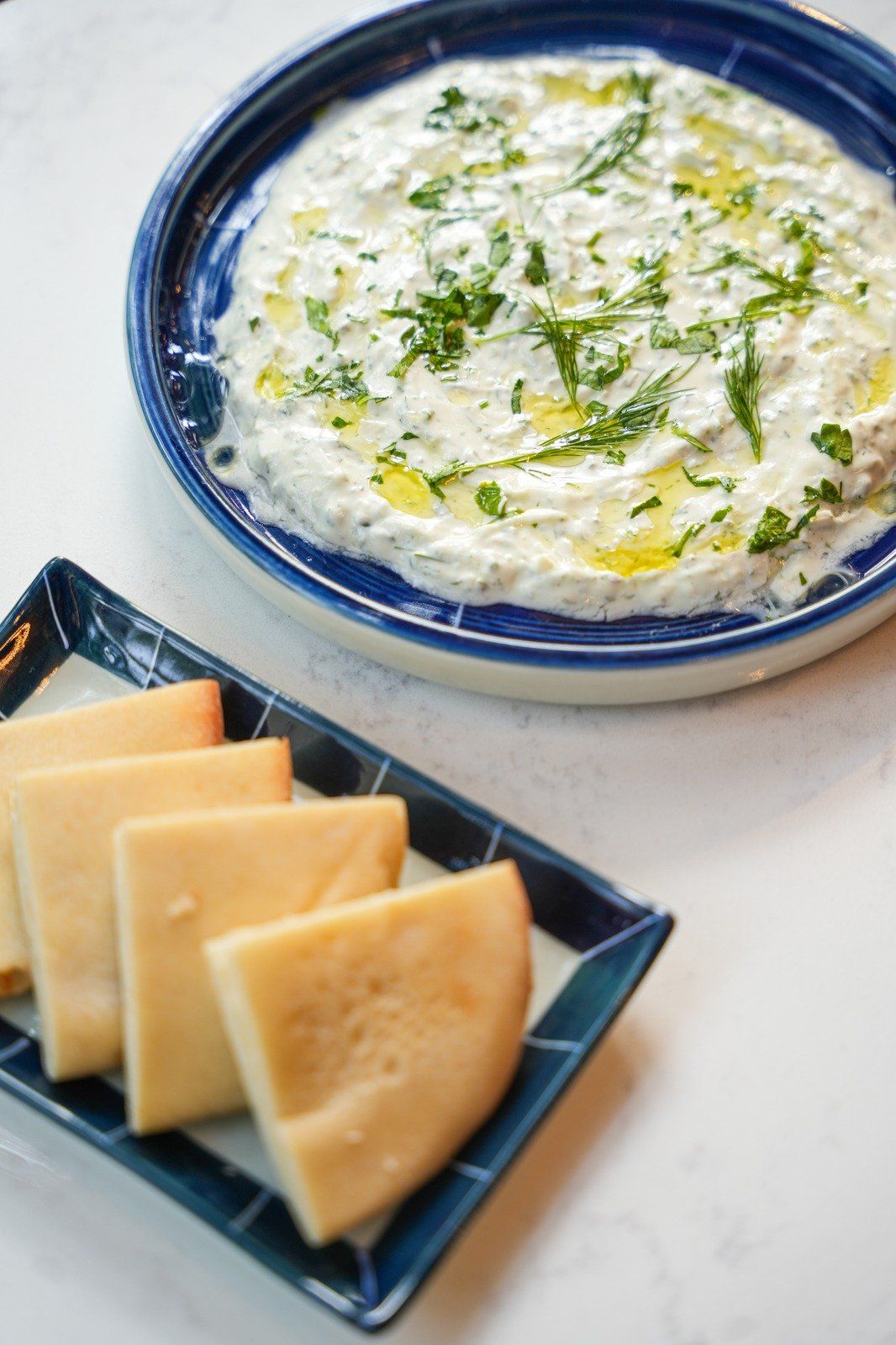 Classic Greek yogurt, spread with fresh cucumber & roasted garlic dip